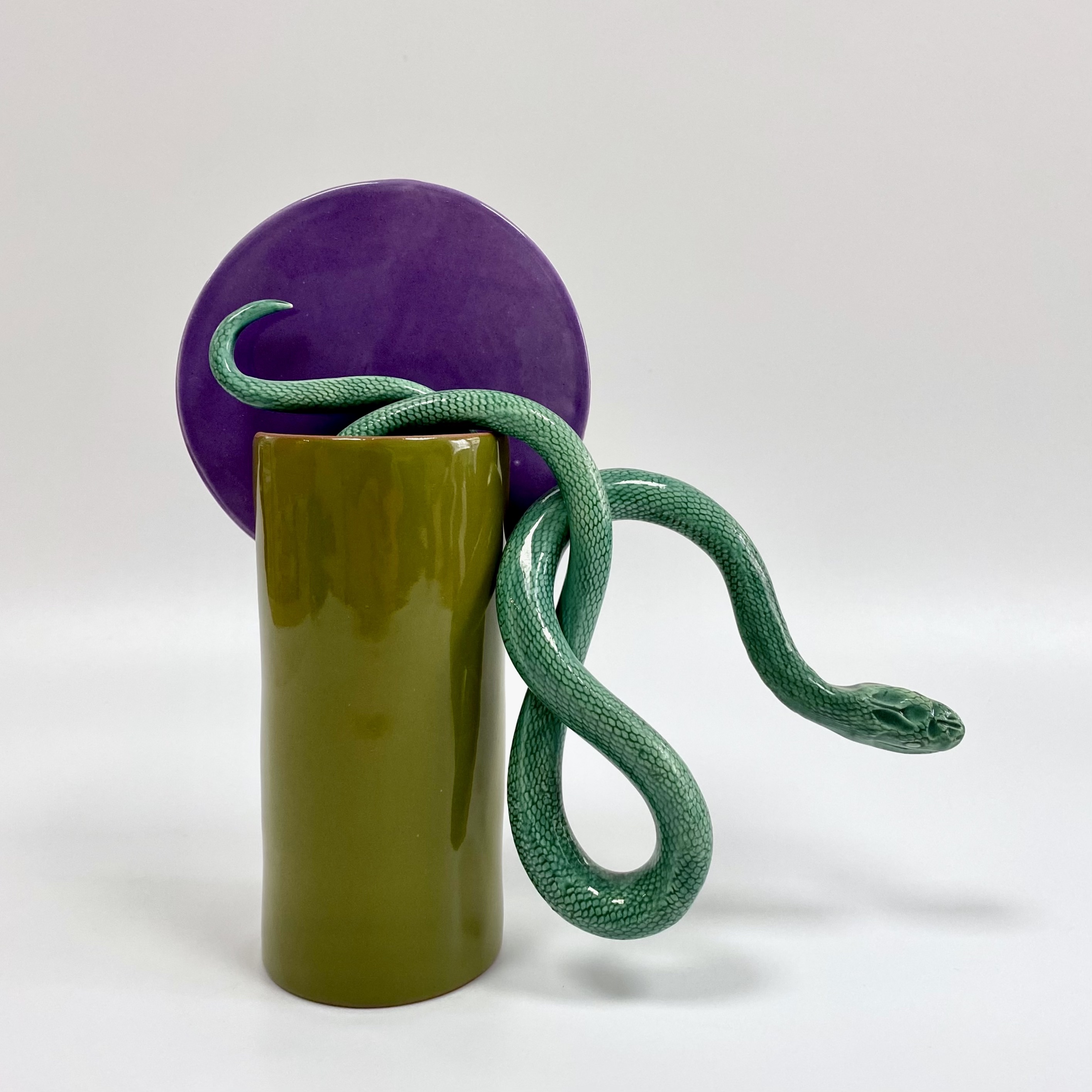 Il fait éclore son univers exotique et baroque sur ses faïences aux couleurs flamboyantes tel un jardin d’eden moderne, peuplé de végétaux exubérants et d’animaux fantasques.